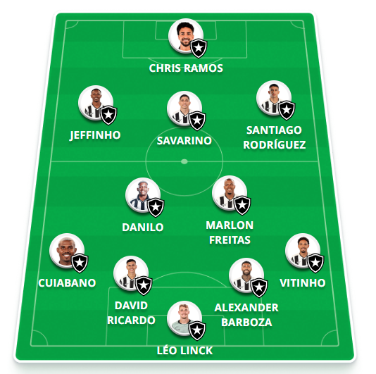 Provável escalação: Léo Linck; Vitinho, David Ricardo, Barboza, Cuiabano (Alex Telles); Marlon Freitas, Danilo (Newton); Santi Rodríguez, Savarino, Jeffinho; Chris Ramos (Arthur Cabral).