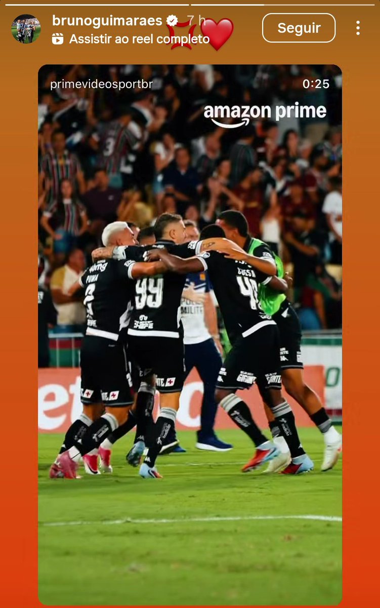 Bruno Guimarães posta foto dos jogadores do Vasco comemorando classificação na Copa do Brasil