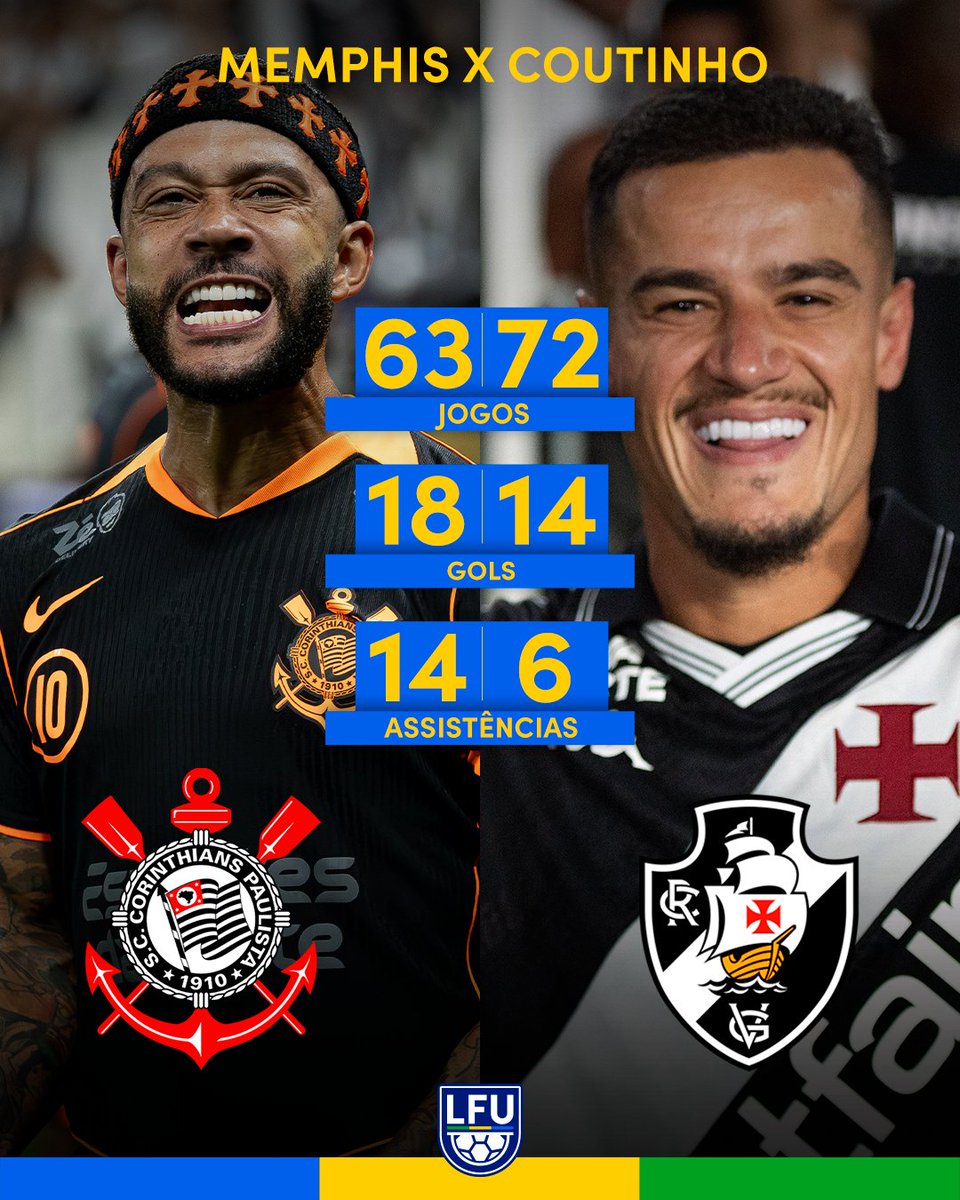 Se liga nos números de Memphis e Coutinho desde suas estreias por Corinthians e Vasco, respectivamente, em 2024! Quem leva a melhor na decisão de logo mais?