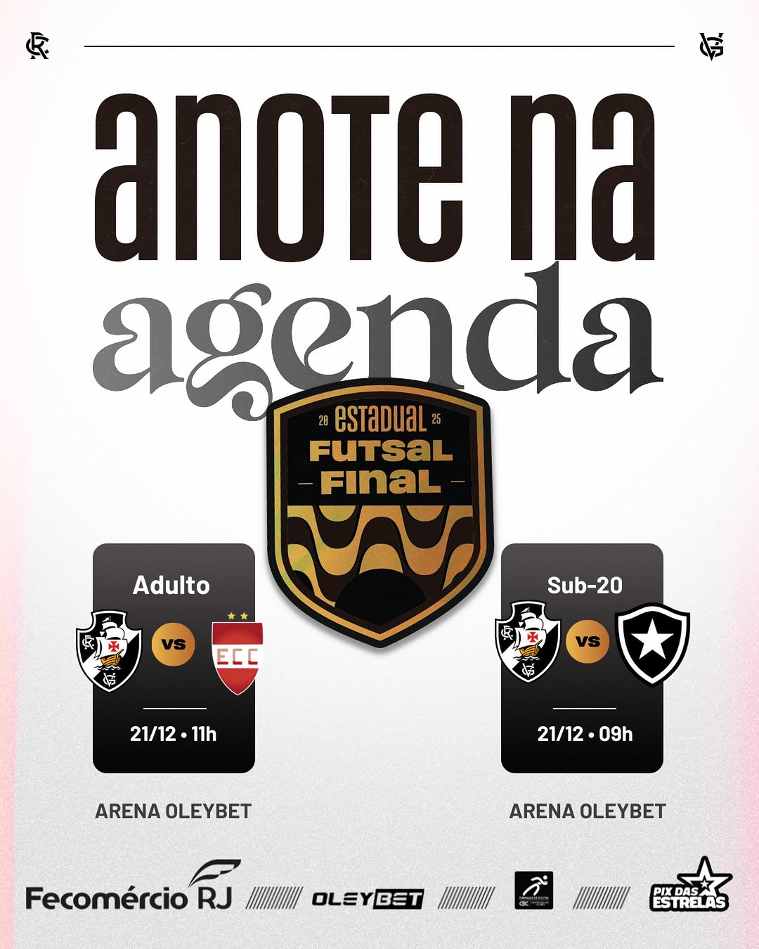 Futsal: Vasco disputa finais do Estadual no Sub-20 e no Adulto neste domingo a partir das 9h na Arena OleyBet