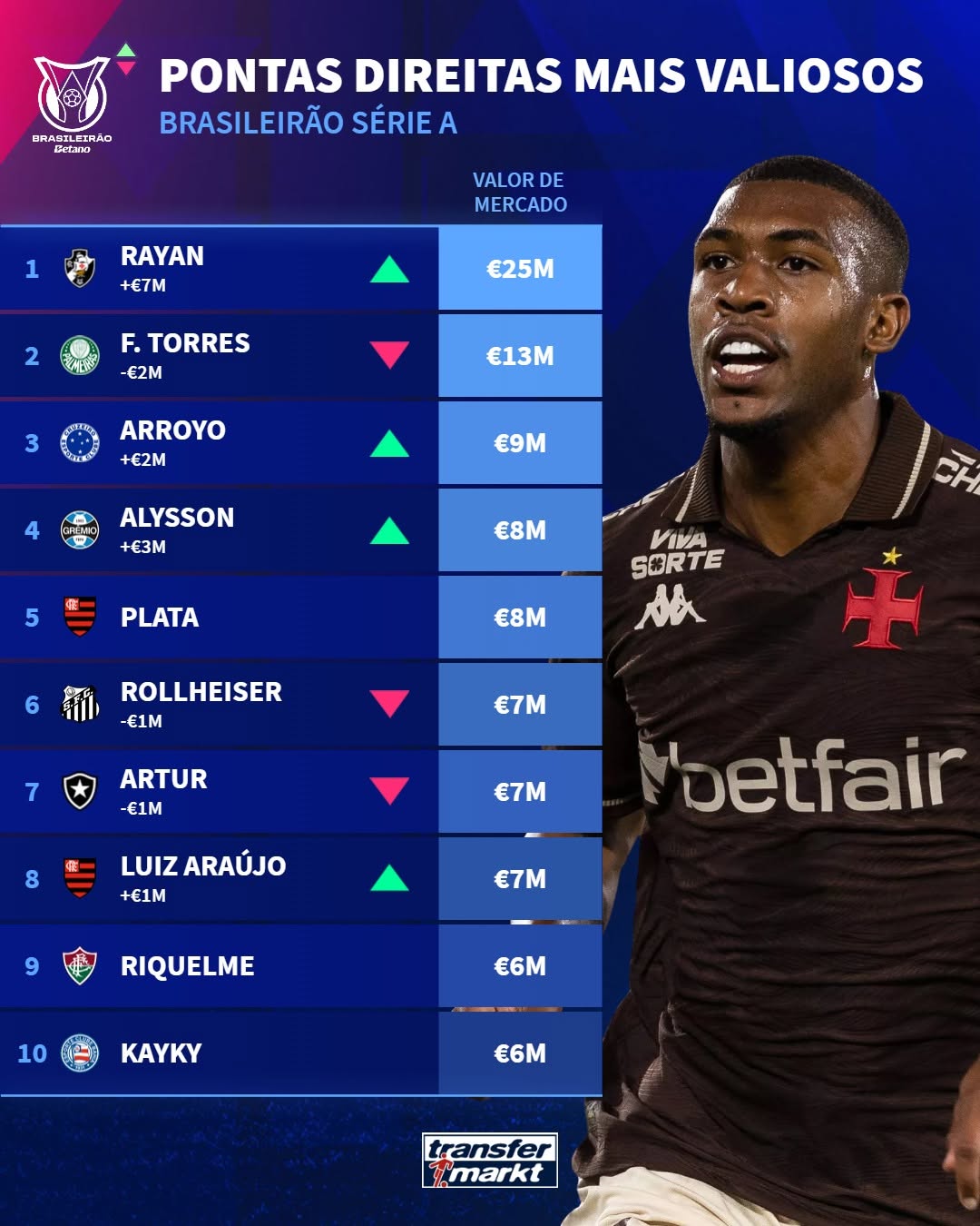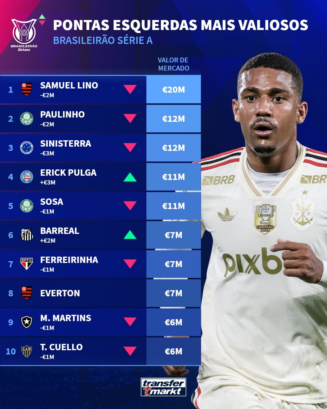 Jogadores em alta e em baixa entre os pontas mais valiosos do Brasileirão após o update! 📊