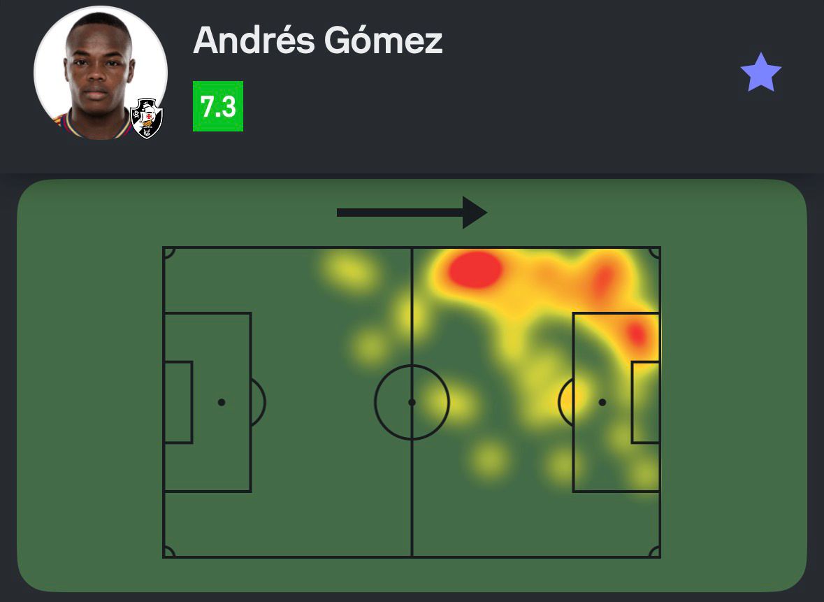 Andrés Gómez foi o líder de dribles certos em Vasco 1 x 2 Corinthians