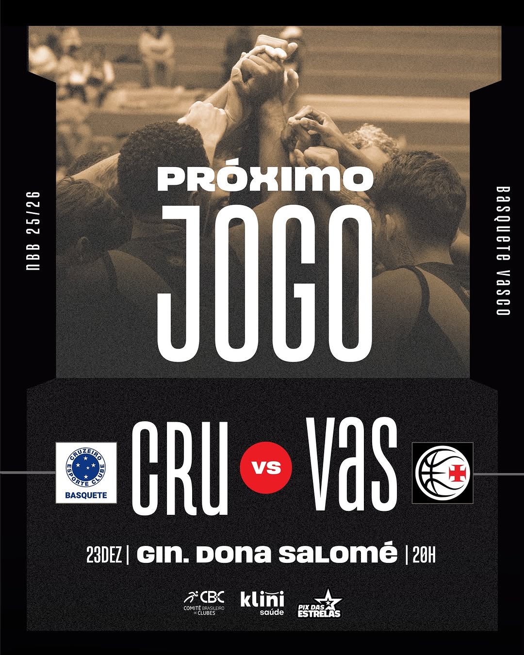 AMANHÃ o Vasco da Gama entra em quadra contra o Cruzeiro, às 20h, no Ginásio Dona Salomé. 🏀💢
