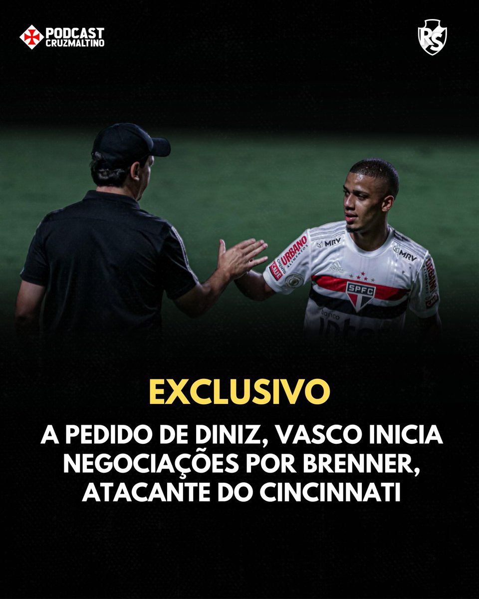 « O Vasco iniciou contatos pela contratação do atacante Brenner, que tem contrato se encerrando com o Cincinnati (MLS), o jogador pertence a Udinese e estava emprestado.