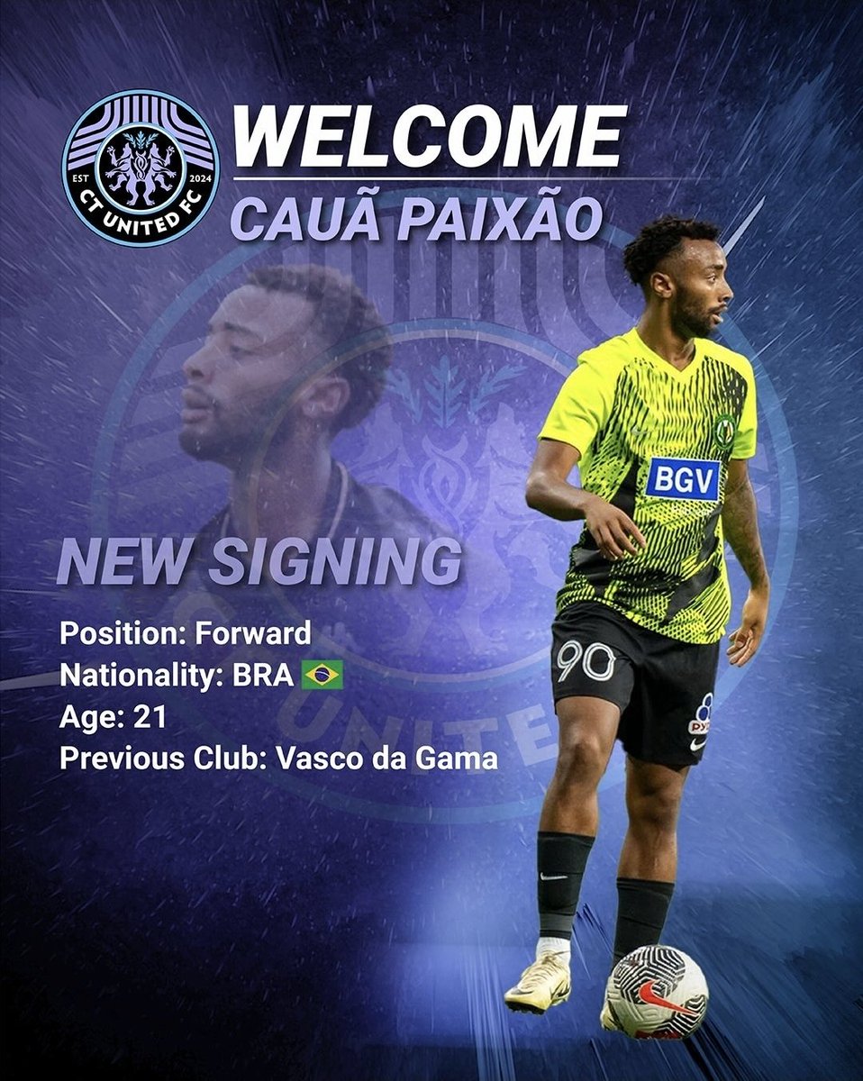 Cauã Paixão, atacante revelado pelo Vasco, está a caminho do CT United, dos Estados Unidos.