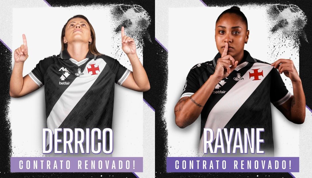 O Vasco acertou a extensão de contrato de mais duas atletas da equipe profissional feminina: a zagueira Rayane (26) e da volante Derrico (31), ambas integrantes desde o início da temporada de 2025.