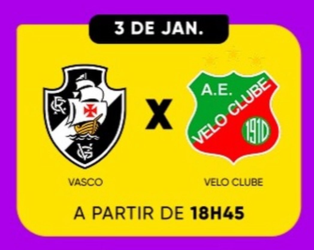 Muito feliz em informar aos amigos que neste sábado irei comentar a partida entre Vasco x Velo Clube pela Copinha na CazéTV. Estarei nessa ao lado de Robert e com narração de Raony Pacheco. Estreia da Nike e várias joias do Gigante da Colina em campo. Pré-jogo começa às 18:45!