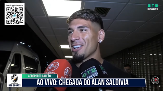 Novo reforço do Vasco, Alan Saldivia já está no Rio de Janeiro. O jogador chileno desembarcou no Aeroporto do Galeão por volta das 23h30 desta 6ª-feira.