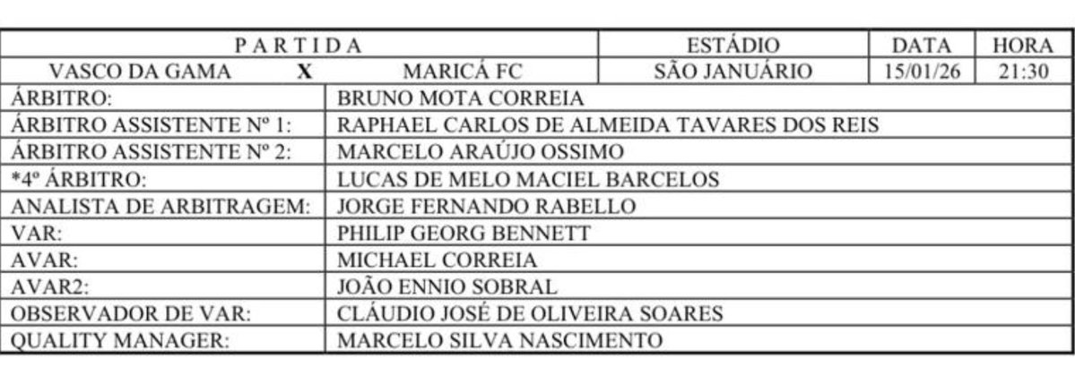 Bruno Motta Corrêa apitará Vasco x Maricá; Philip Georg Bennett será o VAR