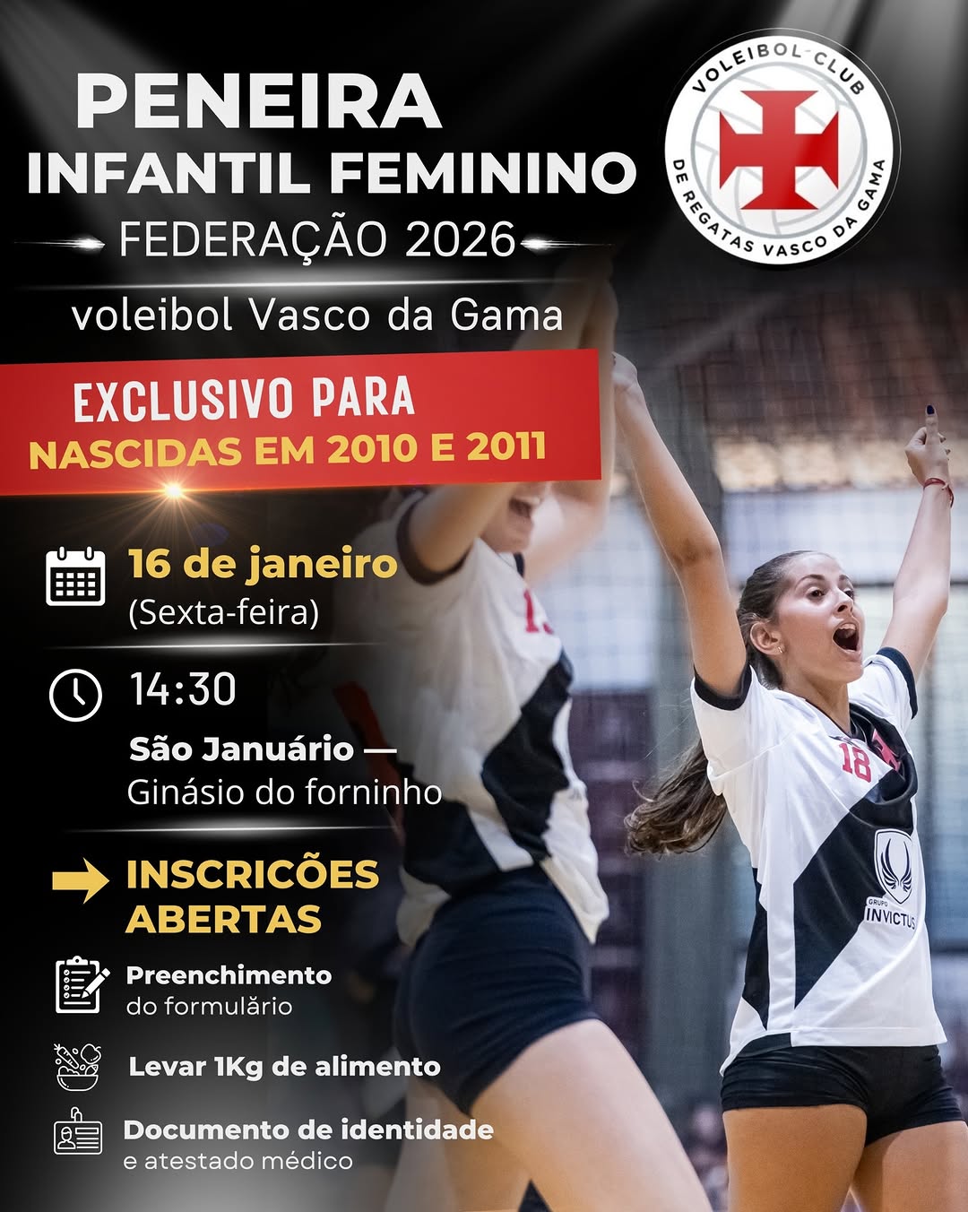 Vôlei Feminino: Vasco fará peneira para a equipe Infantil nesta 6ª-feira a partir das 14h30 em São Januário