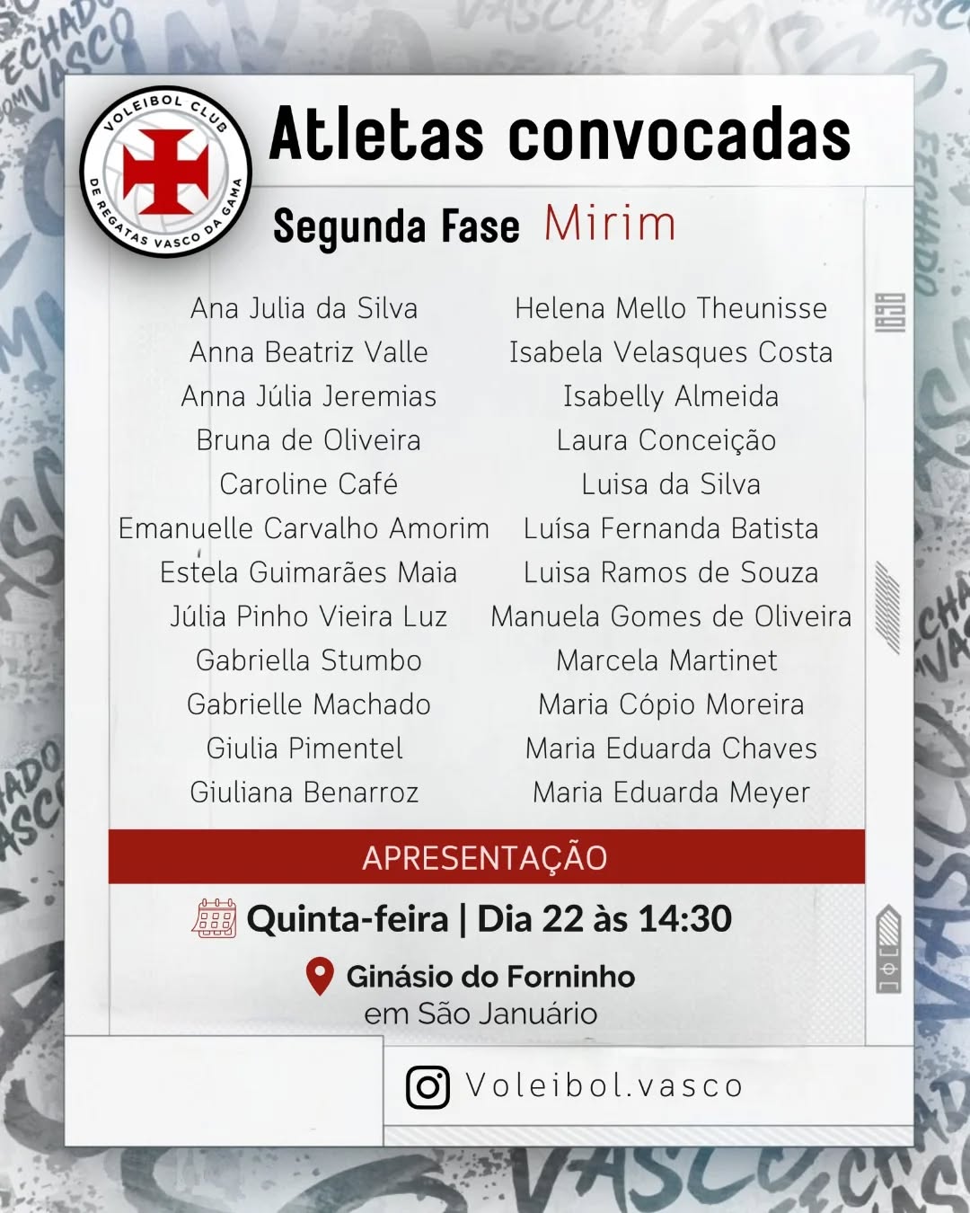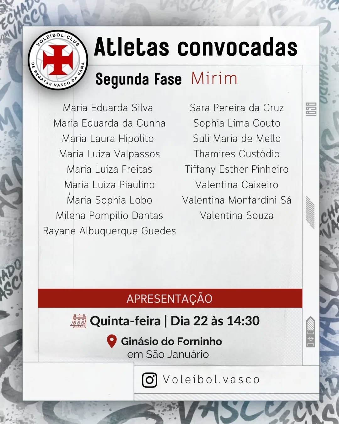 Vôlei Feminino: Vasco divulga as atletas convocadas nas peneiras do Mirim e do Infantil