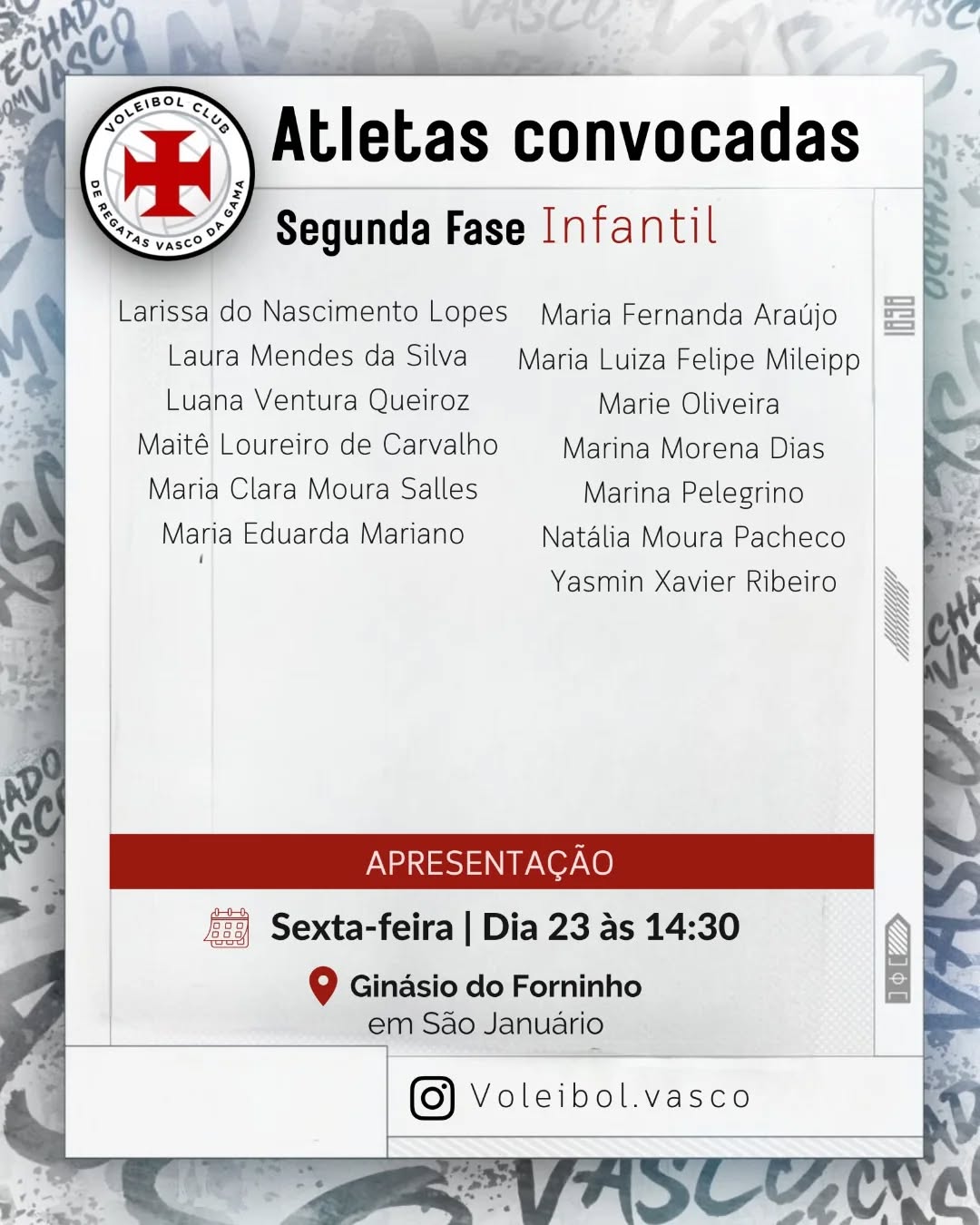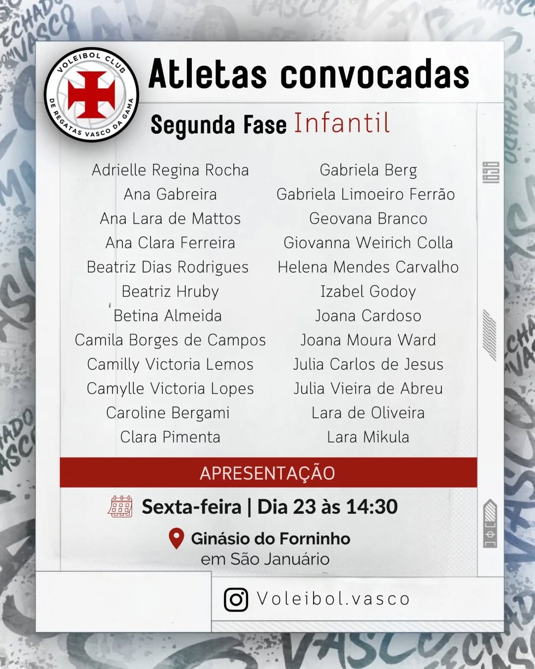 💢Atletas convocadas para a 2a fase da peneira para a categoria Sub-17 (Infantil)💢