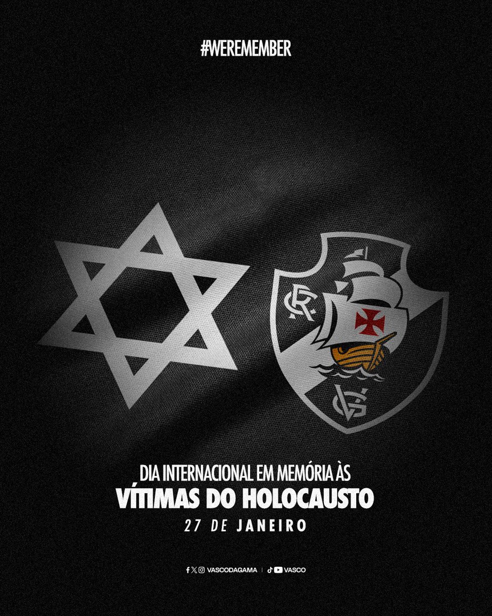 𝐋𝐞𝐦𝐛𝐫𝐚𝐫 𝐩𝐚𝐫𝐚 𝐧𝐚̃𝐨 𝐫𝐞𝐩𝐞𝐭𝐢𝐫. O Vasco da Gama reforça nesta data, em memória e respeito às vítimas do holocausto, para que nunca mais aconteça.