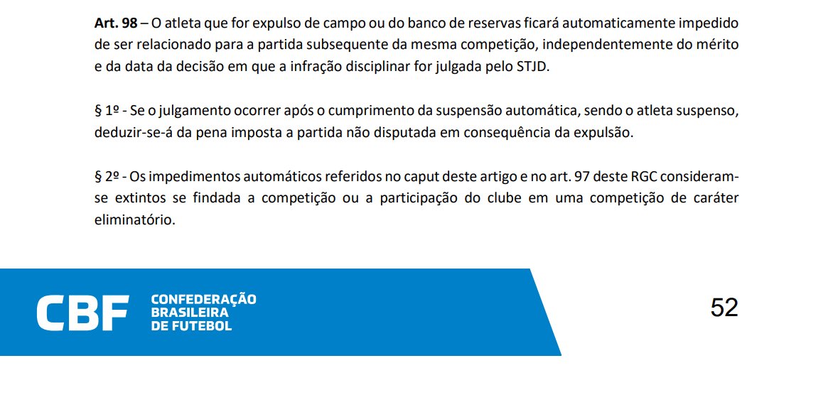 Confira o artigo do Regulamento Geral de Competições da CBF de 2025: