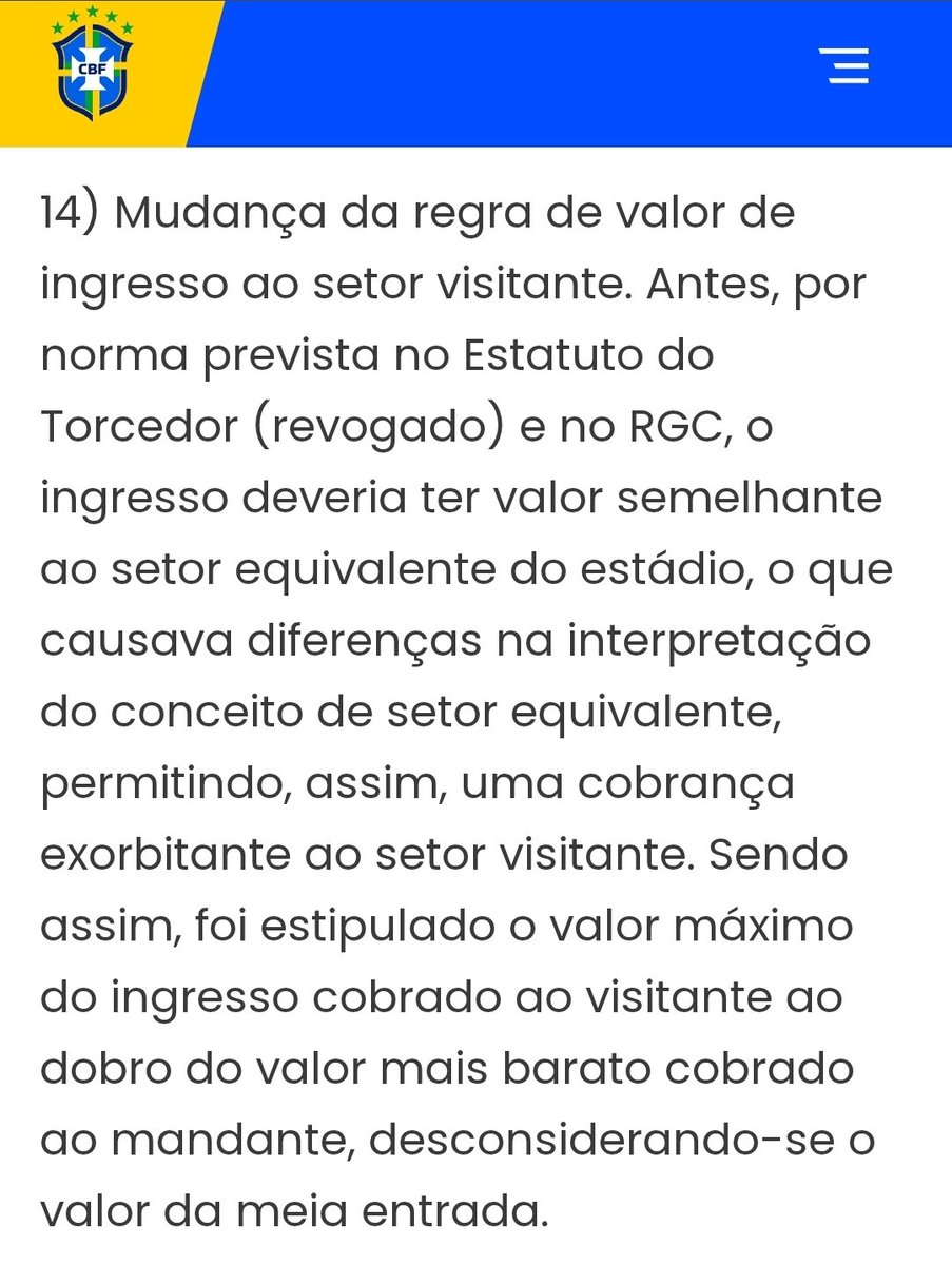 Mais do que certo a CBF regulamentar isso de uma forma objetiva, pois a regra anterior dava brechas para valores muito fora do padrão do estádio em jogos de maior apelo.