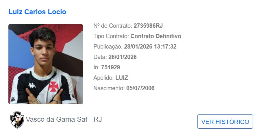O novo vínculo do meia Luiz Lócio com o Vasco acaba de ser publicado no BID da CBF. O jogador agora tem contrato definitivo com o clube o final de 2028.