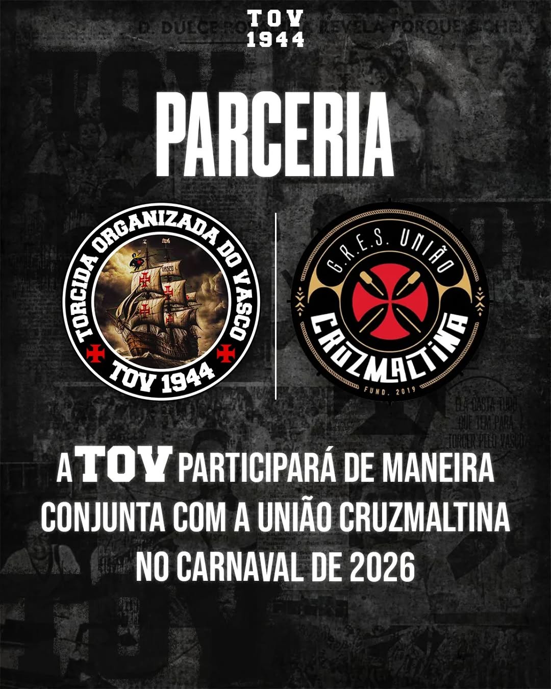 Neste Carnaval de 2026, a TOV entra oficialmente na avenida em parceria com a G.R.E.S. União Cruzmaltina, uma união que carrega orgulho, identidade e respeito à nossa história.