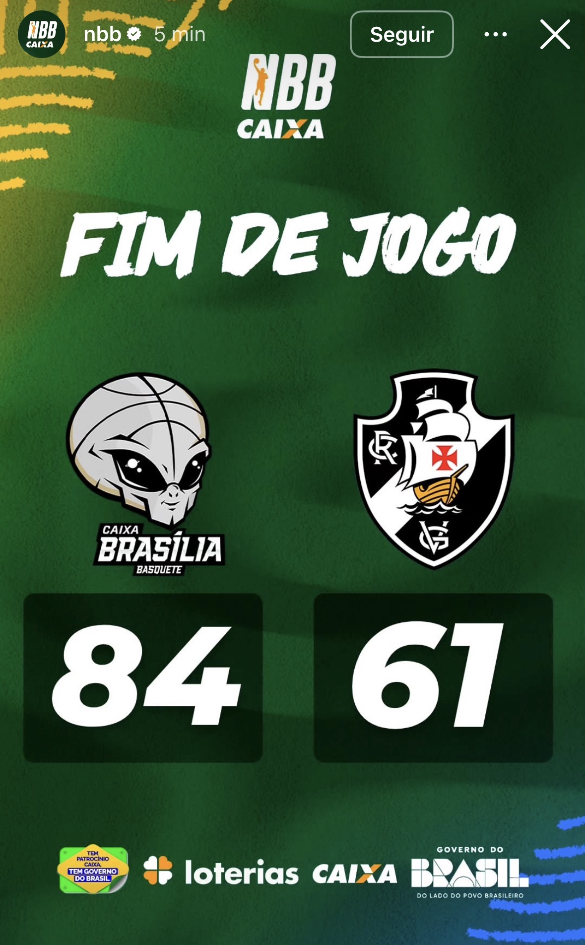 Basquete: Vasco perde para o Brasília fora de casa pelo NBB: 84 a 61
