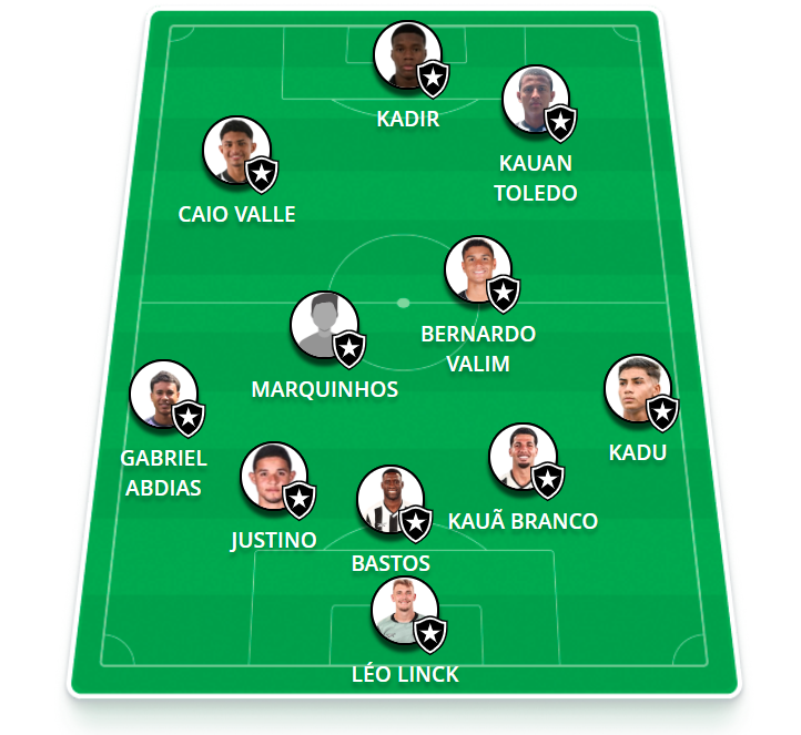 Provável time: Léo Linck, Bastos, Kauã Branco (Barboza) e Justino; Kadu, Marquinhos, Bernardo Valim, Gabriel Abdias; Caio Valle, Kauan Toledo e Kadir.