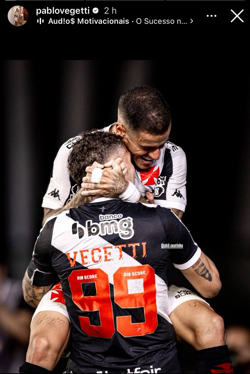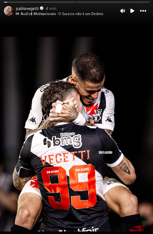 Pablo Vegetti postou uma foto com Philippe Coutinho e outra com Lucas Piton em seus stories. Ambos atravessam um momento ruim em campo e foram alvos de muitas críticas por parte da torcida do Vasco nessa semana.