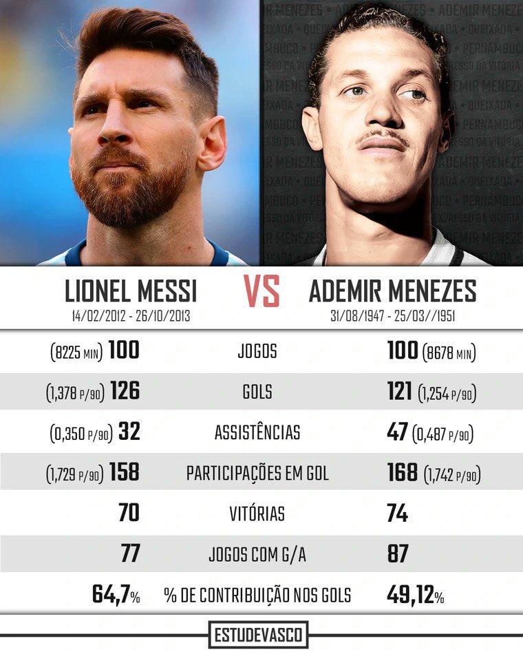 Veja comparação entre os números de Messi e de Ademir Menezes em suas melhores fases