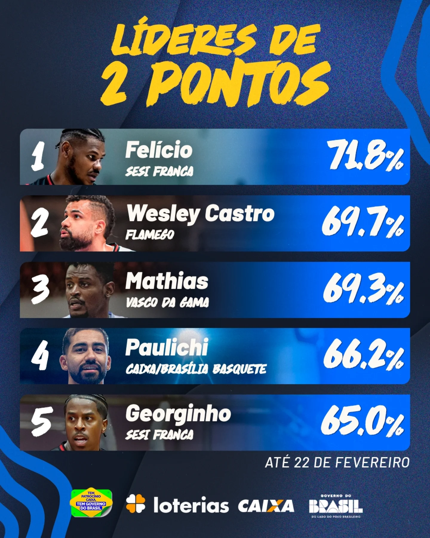 Assim como os times, os jogadores também estão deixando o nível da competição alto! Confira os líderes de cada um dos principais fundamentos do basquete, com as estrelas do NBB CAIXA! 🔥