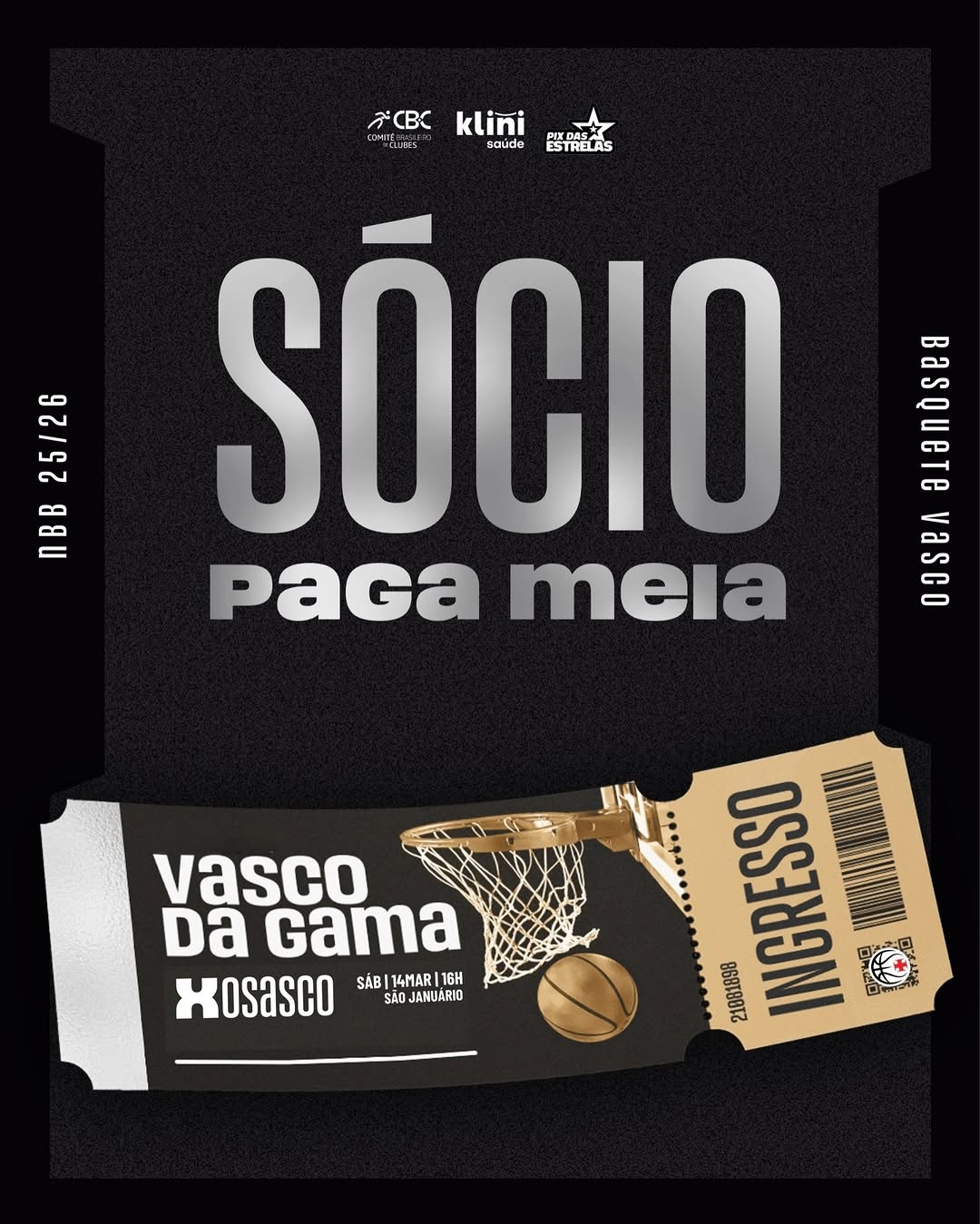 Sábado (14/03) é dia de basquete em São Januário! 🏀💢 Às 16h, o Vasco da Gama entra em quadra para enfrentar o Osasco por mais um desafio do NBB CAIXA. Sócios do Vasco garantem meia-entrada!