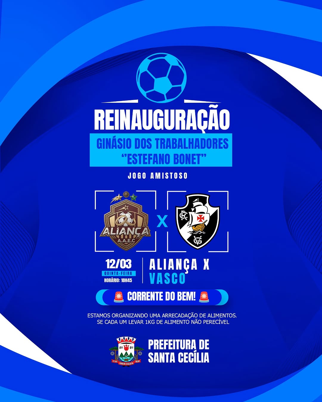 Prepare o coração e a torcida! Hoje celebramos a reinauguração do Ginásio dos Trabalhadores “Estefano Bonet” com um jogão amistoso entre Aliança x Vasco. 🏟️✨