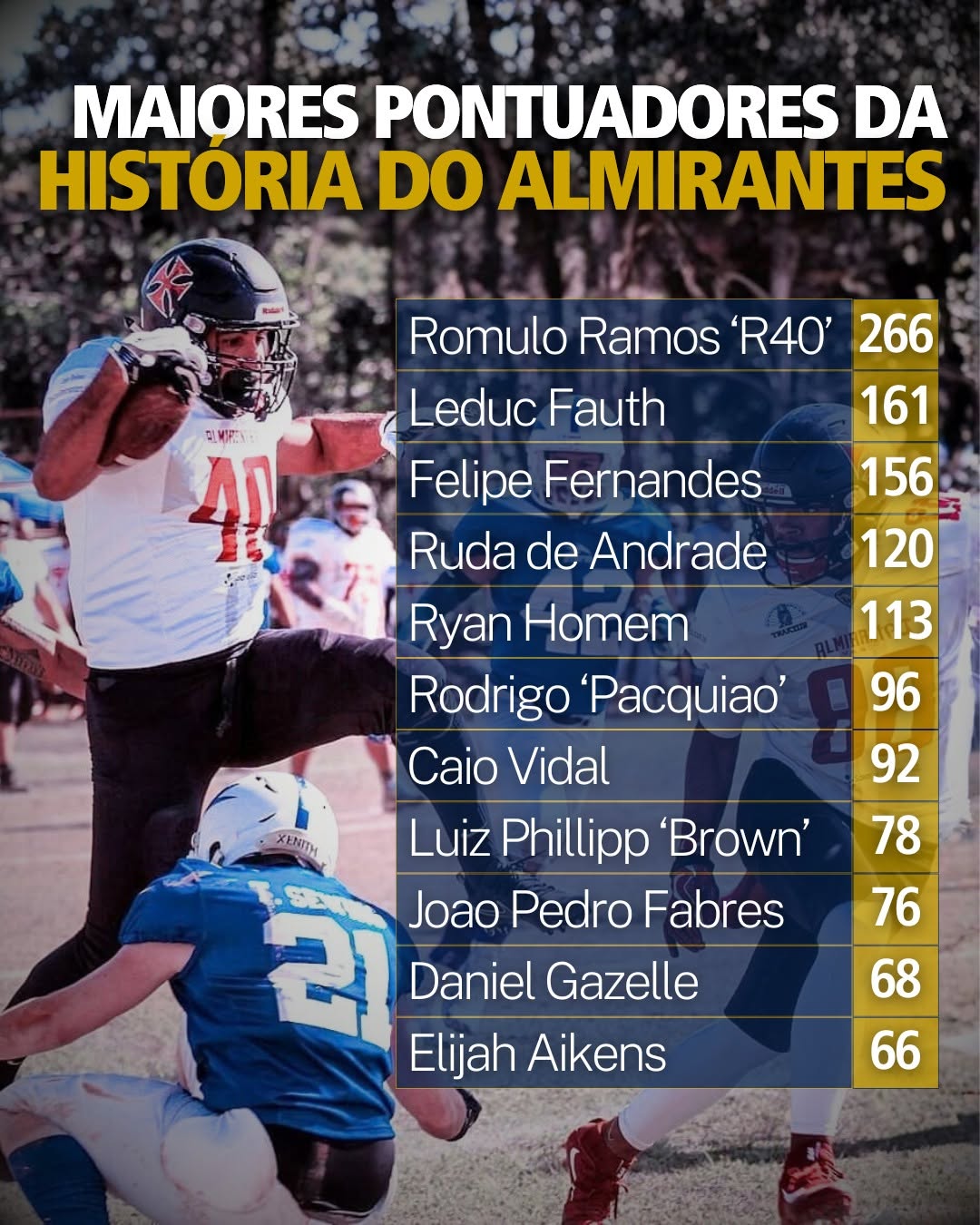 Futebol Americano: Romulo Ramos ‘R40’ é o maior pontuador da história do Vasco Almirantes; veja o ranking