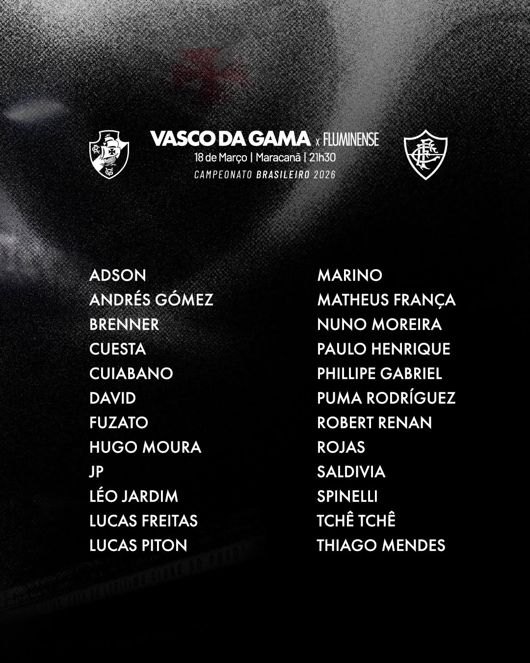 📋 Relacionados para o clássico com o Fluminense nesta quarta-feira. 💢