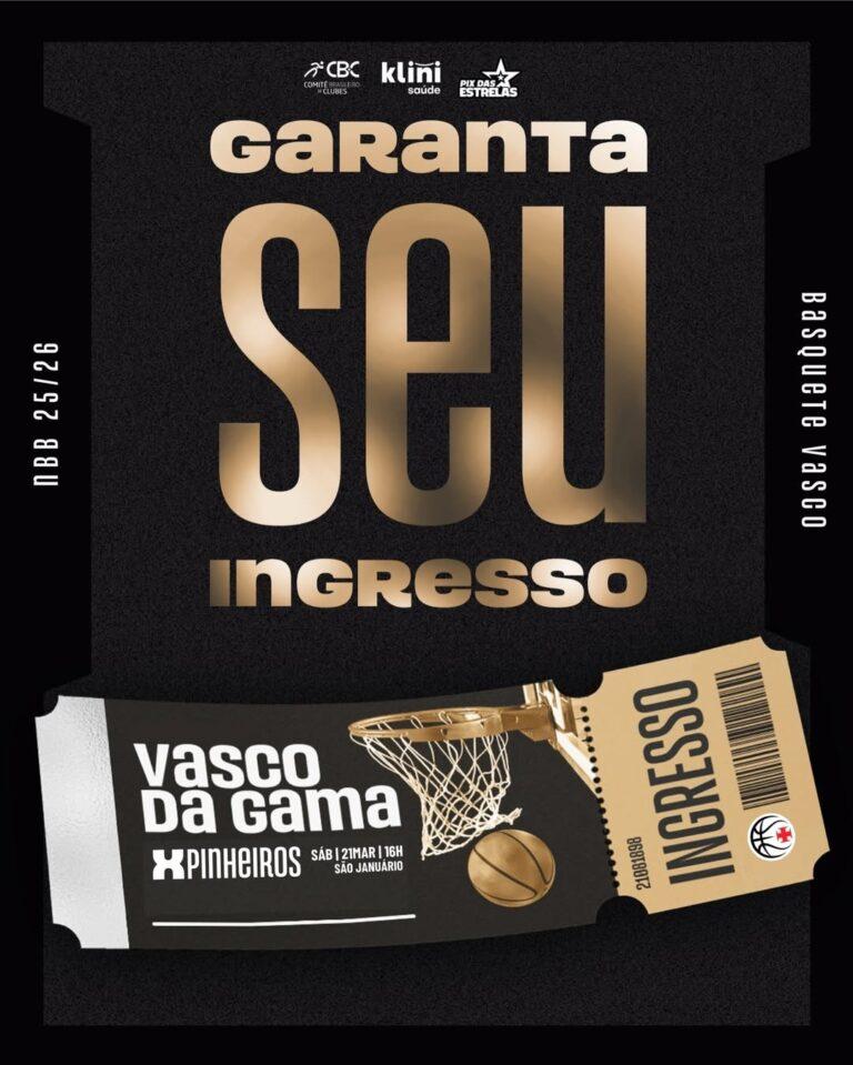 Site de vendas: http://www.bilheteriadigital.com/nbb-caixa-vasco-da-gama-x-pinheiros-21-de-marco?fbclid=PAZXh0bgNhZW0CMTEAc3J0YwZhcHBfaWQMMjU2MjgxMDQwNTU4AAGnFFGGdKSi8j5P_MheKNG8HdEJeqooHuGILpno8uQ0s3wNCBzawWPN6-4rfS8_aem_ysB9aNd-bOUlAZpkZ5QgfQ