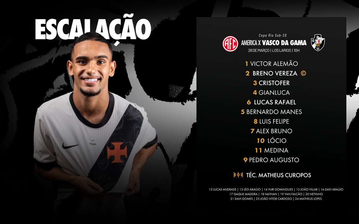 Sub-20: Confira a escalação do Vasco para o jogo contra o America