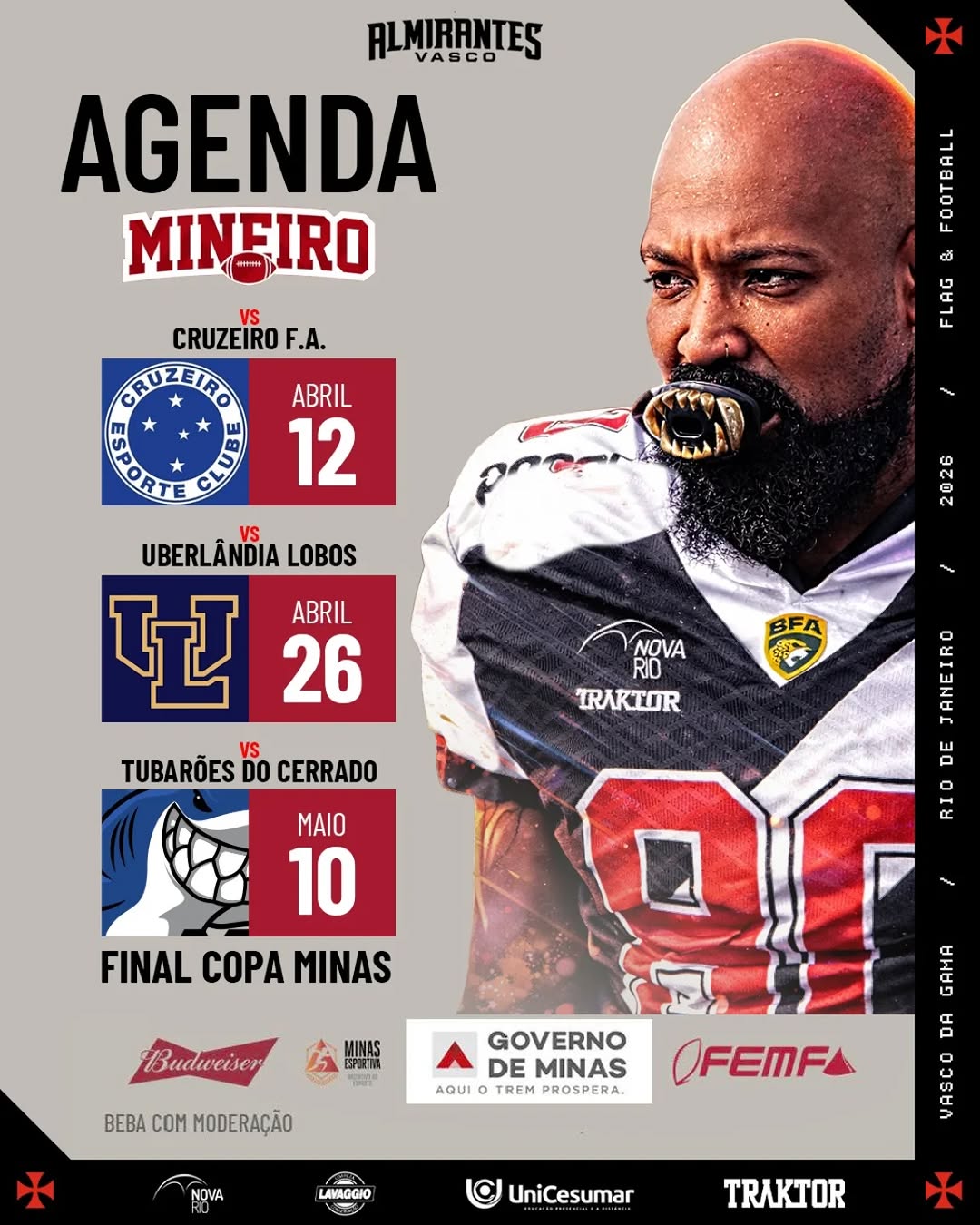 Futebol Americano: Vasco Almirantes disputará o Campeonato Mineiro; veja a tabela