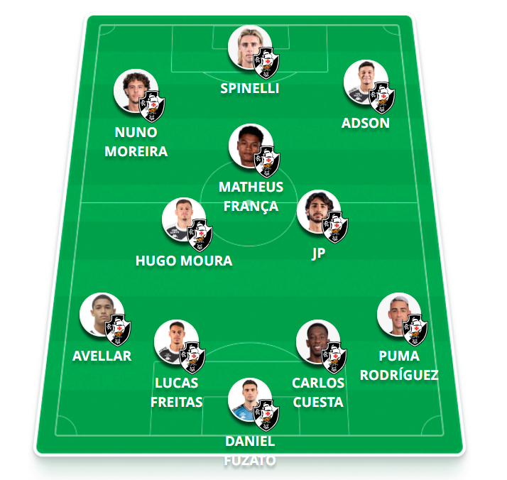 Provável escalação: Daniel Fuzato; Puma, Cuesta, Lucas Freitas, Avellar; Hugo Moura, JP, Matheus França; Adson (Marino), Nuno Moreira, Spinelli.