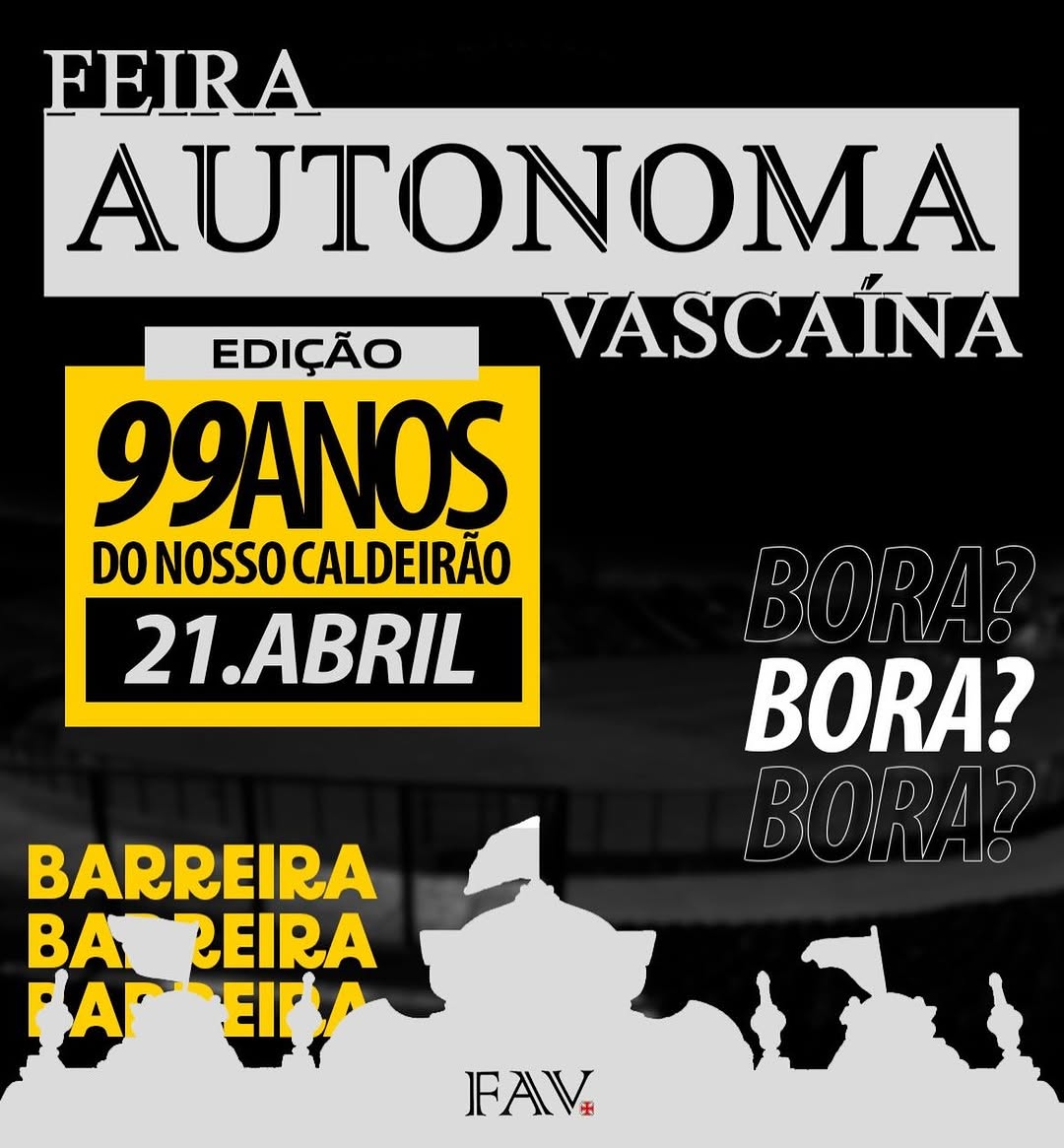 Dia 21 de abril, terça feira, feriadão e pra comemorar os 99 anos do nosso Caldeirão, nada melhor que a edição da nossa feira ser em frente a fachada de São Januário. Eai, tem vista melhor? 🏟️