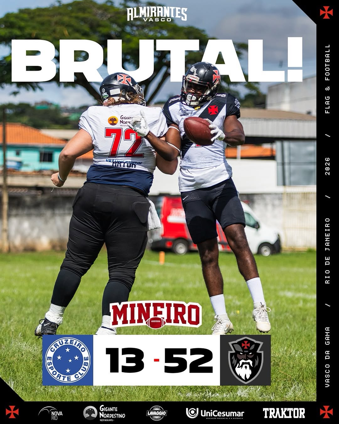 Futebol Americano: Vasco vence o Cruzeiro por 52 a 13 na estreia do Campeonato Mineiro