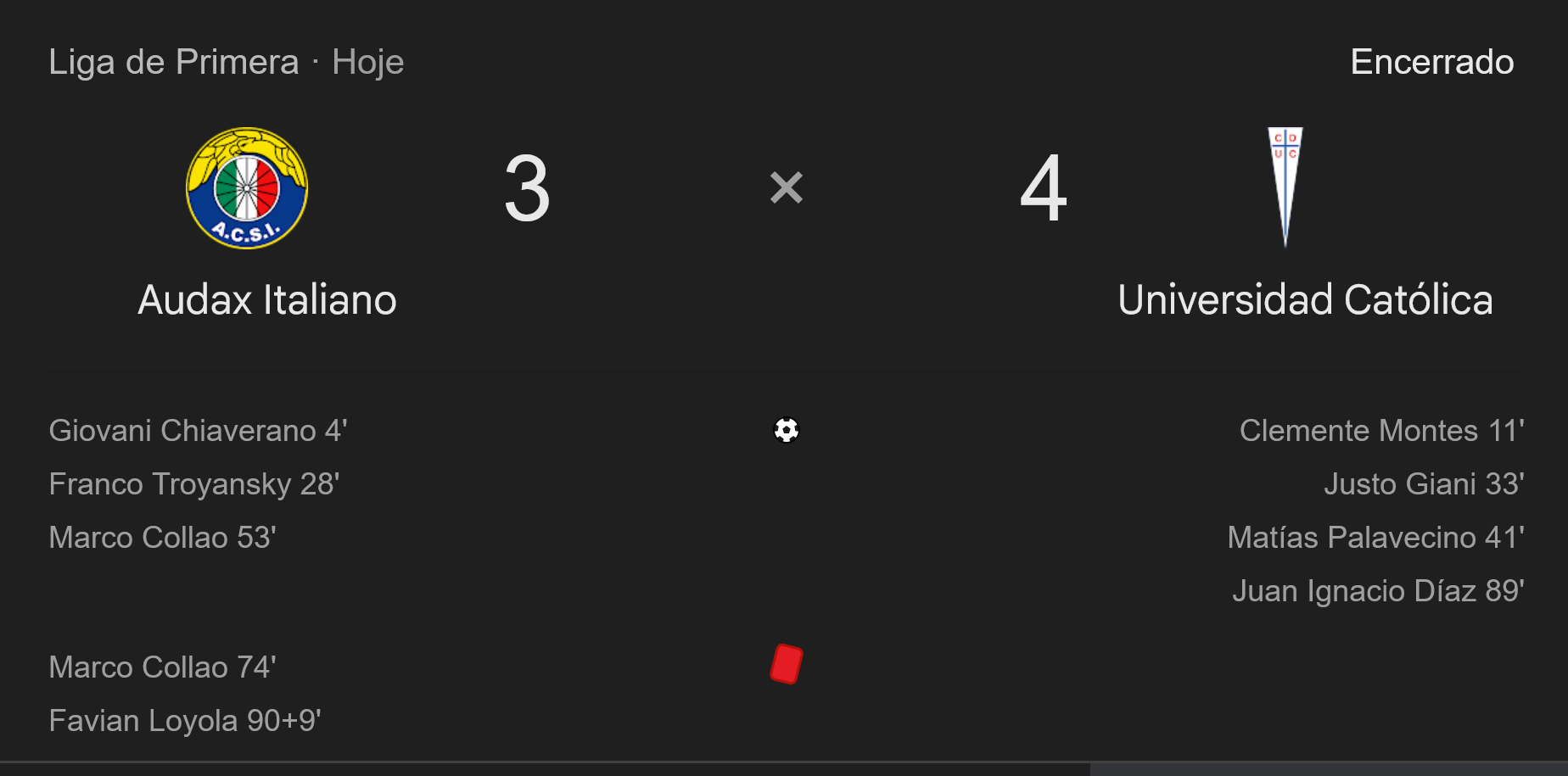 Próximo adversário do Vasco, Audax Italiano perde de virada para a Universidad Católica por 4 a 3