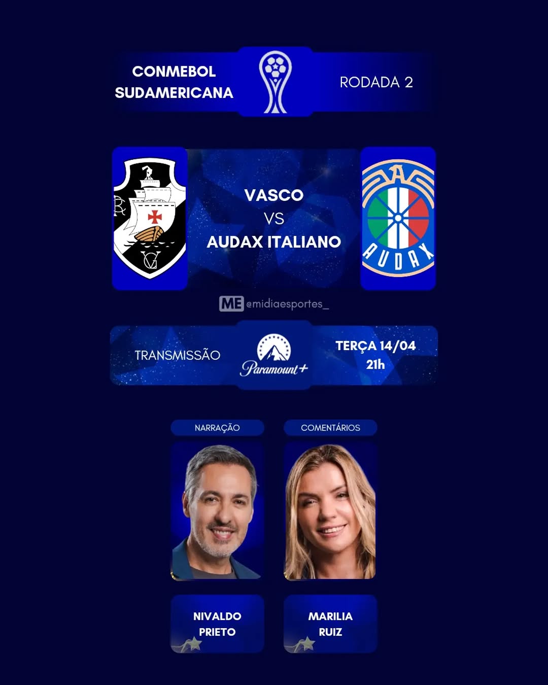 📆TERÇA 14/04 ⏱️21H ▶️VASCO X AUDAX ITALIANO 📺PARAMOUNT PLUS