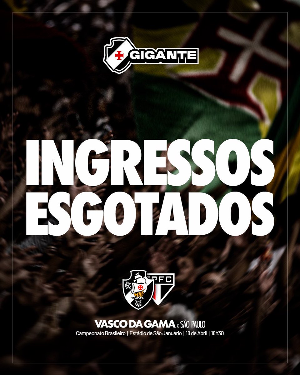 INGRESSOS PARA VASCO X SÃO PAULO ESTÃO ESGOTADOS