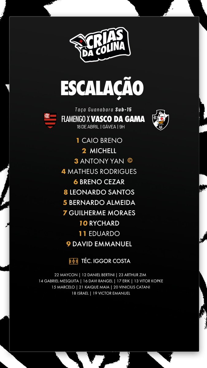 Sub-15: Confira a escalação do Vasco para o jogo contra o Urubu