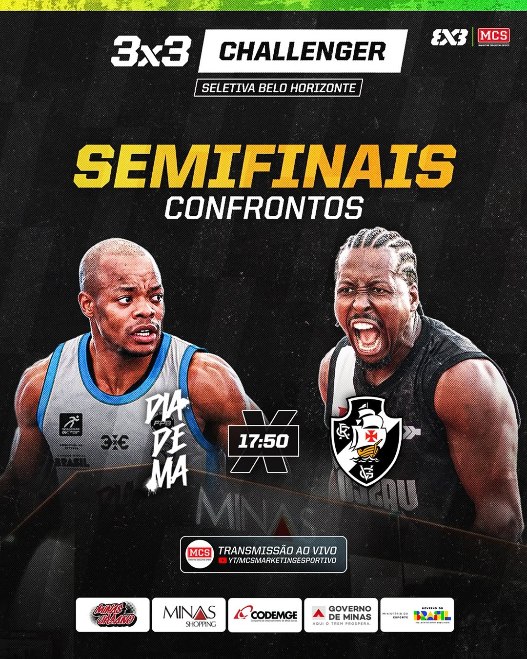 Basquete 3×3: Vasco vence o CT Diadema por 17 a 12 e vai à semifinal da Seletiva do Challenger Brasília